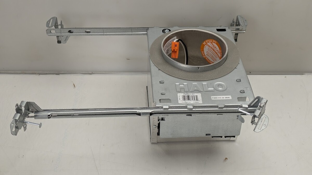 This 4-in. Halo Series LED recessed lighting housing is perfect for new construction. It features Slide-N-Side wire traps to connect standard cables without tools and a steel frame with precise cutouts so it's easy to crimp hanger bars in position. It also includes pre-installed nails with a guidance system for smooth installation in laminated or regular lumbar beams.