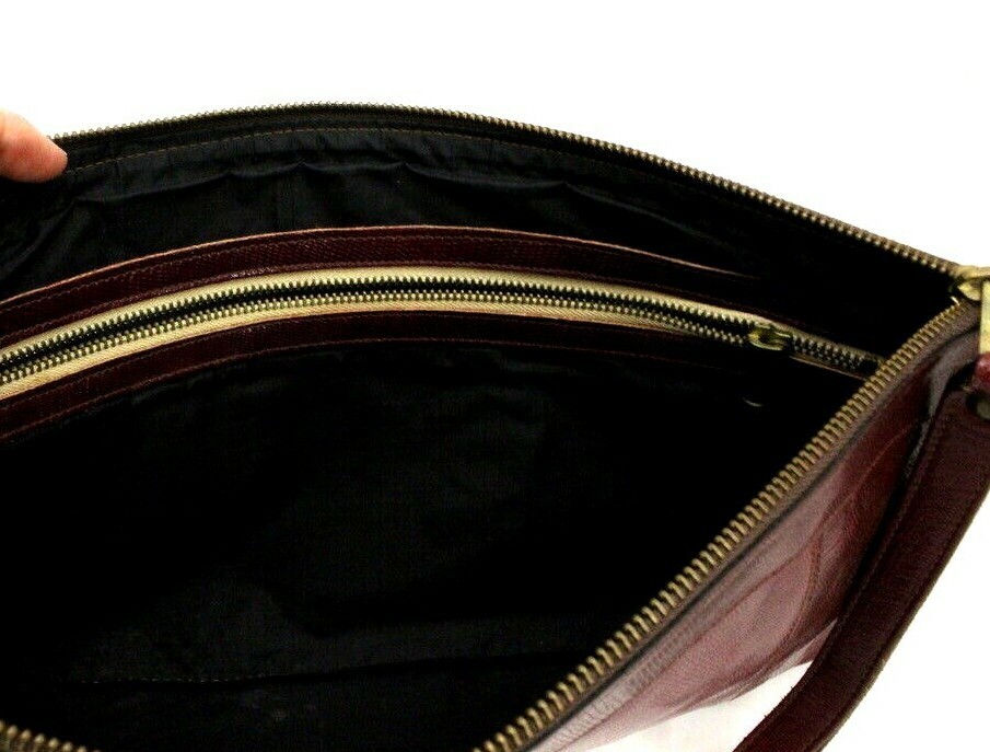 Vtg 70s Etienne Aigner Classic Burgundy Reptile Leather Handbag LARGE Clutch Zip