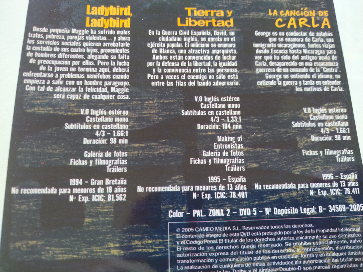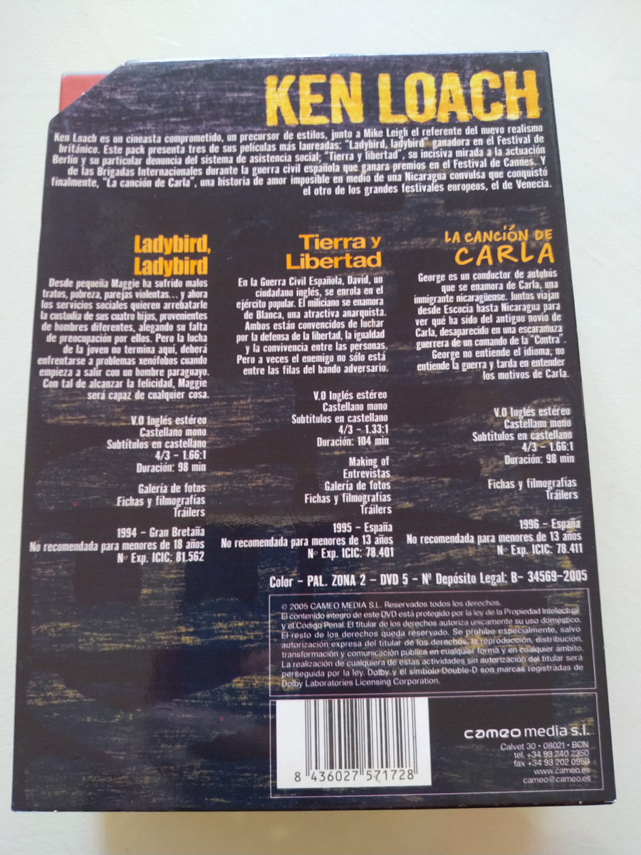 Ken Loach tierra Y Liberta Ladybird cancion Carla - 3 X DVD Spagnolo Inglese Am