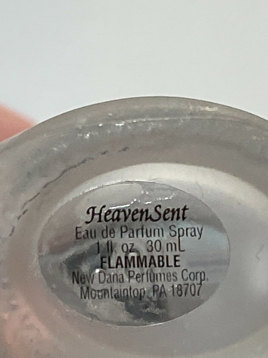HEAVEN SENT by Dana 1 FL Oz Eau de Parfum Spray Mist Vtg 80%Perfume has no box and is in good condition in a frosted glass bottle with fancy frosted cherubs lid.