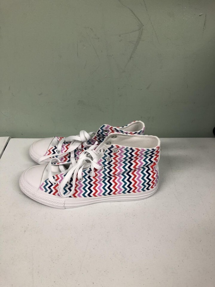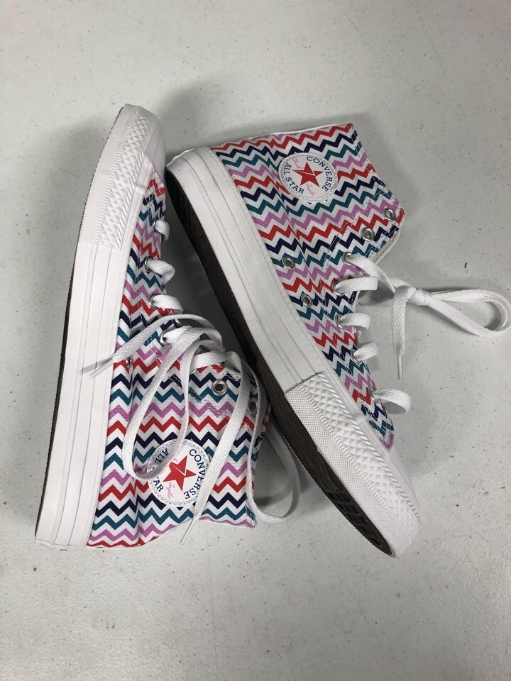 Featured in an eye-catching Zigzag striped Upper, these round-toe, lace-up Converse Kids Chuck TaylorAll-Star sneakers are a perfect match for her laid-back style!