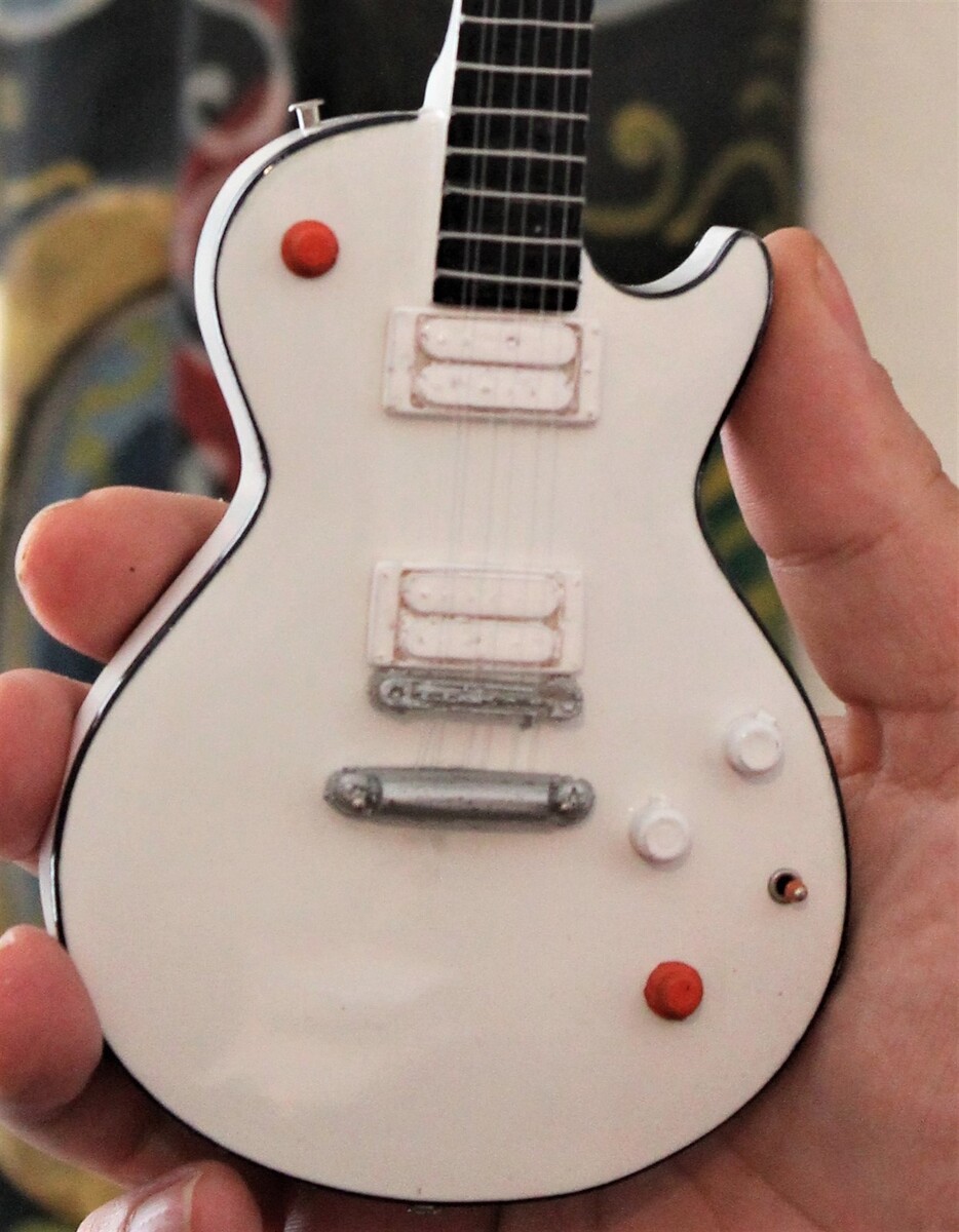 This miniature 1:4 scale replica model instrument can fit in the palm of your hand. It is approximately 10.5 inches in length and comes with a display stand. Each guitar is individually handcrafted from solid woods, plastics, resins, etc. (depending on the guitar style) with plastic tuning keys. Check out our listings for guitar hard cases and miniature amplifiers to complete your guitar set-up.These guitars are hand-crafted and can vary slightly from the pictures. Some guitars look "distressed" and worn -- this is intentional. All items are brand new. These Miniature Replicas Look Great But Are Not Playable. Please handle with care. Returns will not be accepted for turned knobs, played strings, or bent wham
