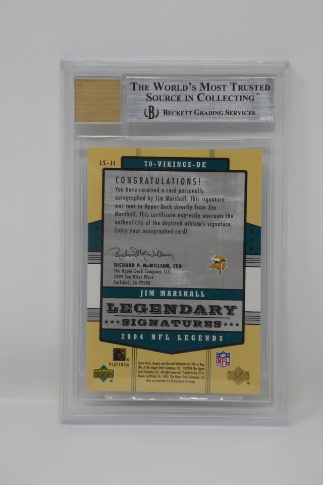 2004 Upper Deck Legends Legendary Signatures Jim Marshall Beckett 9 MINT**
