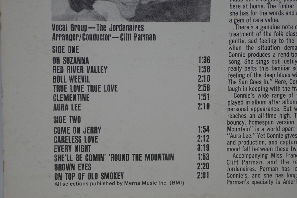 MGM Connie Francis Sings Folk Song Favorites 12" LP Vinyl Record