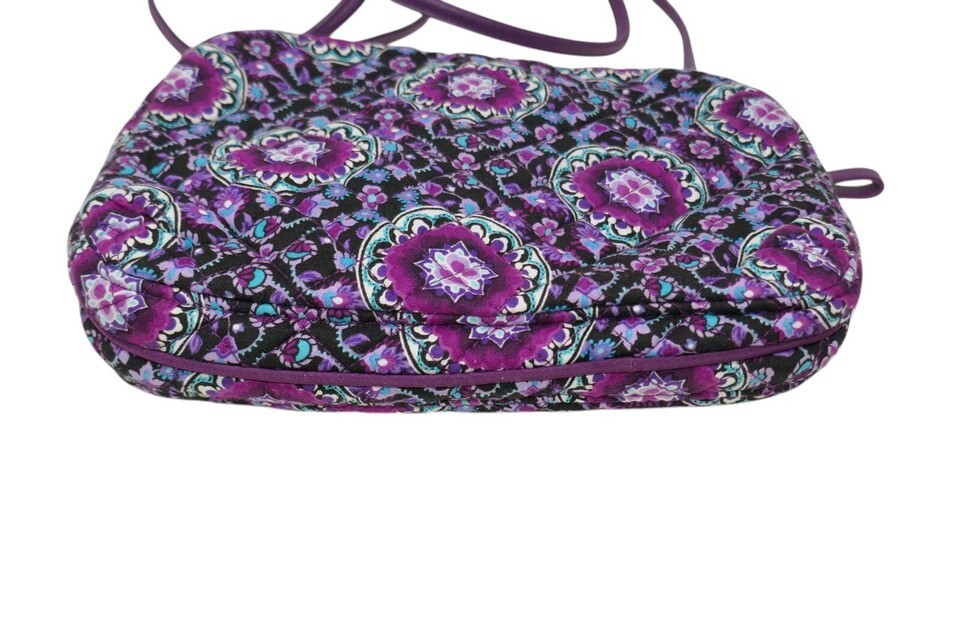 The Vera Bradley Iconic Little Crossbody in Lilac Medallion Purple is a stylish and functional small rectangular bag with a zip closure. It features a purple crossbody strap for easy and hands-free carrying, perfect for casual occasions. This lightweight bag has inner and outer pockets, RFID blocking feature, and quilted finish, making it both fashionable and practical.