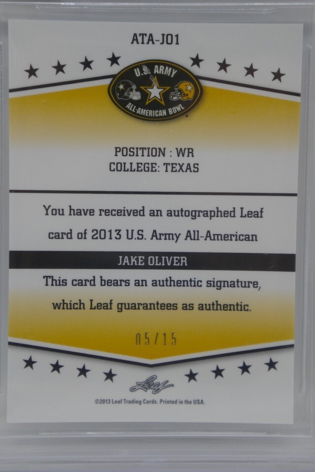2013 Leaf Metal Draft Army All American Bowl Jake Oliver Beckett 10 PRISTINE