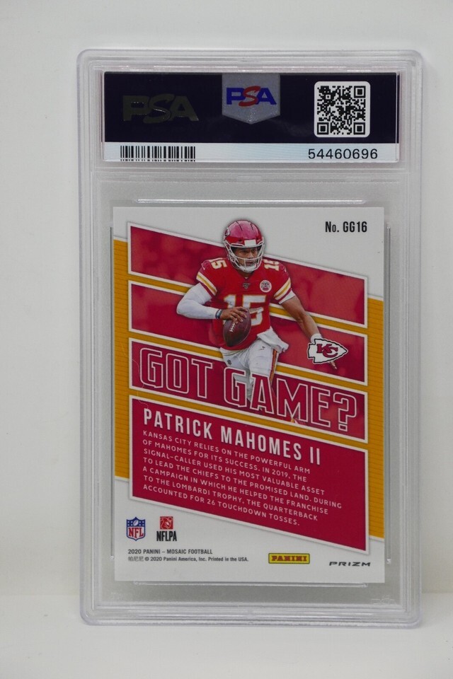 UP for sale is a 2020 Panini Mosaic #GG16 Patrick Mahomes II Got Game Trading Card. This has been graded by PSA.