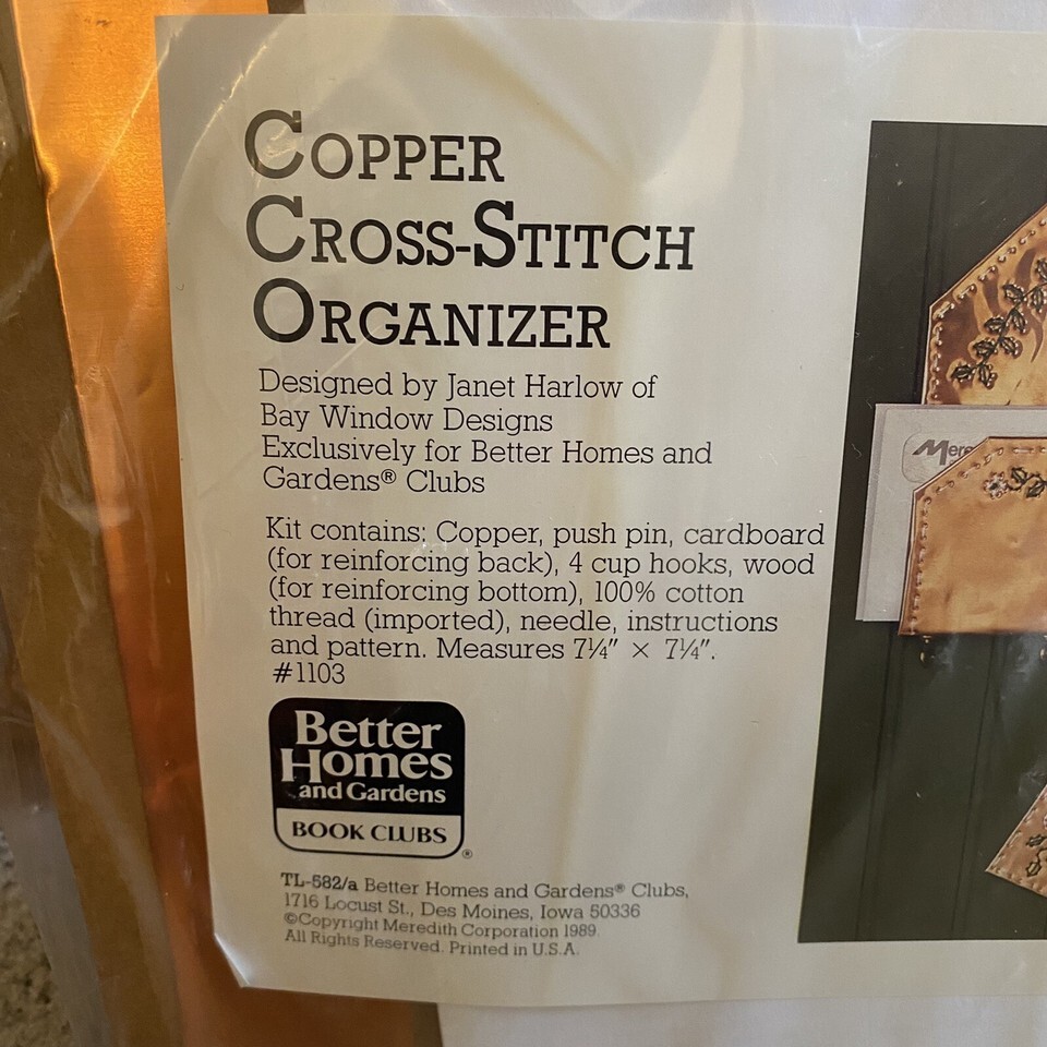 Better Homes and Gardens Book Clubs Copper Cross Stitch Mail Organizer Holder. CLOTHING AND FABRIC ITEMS: All clothing and fabric items have been steam cleaned and/or washed per standards.
