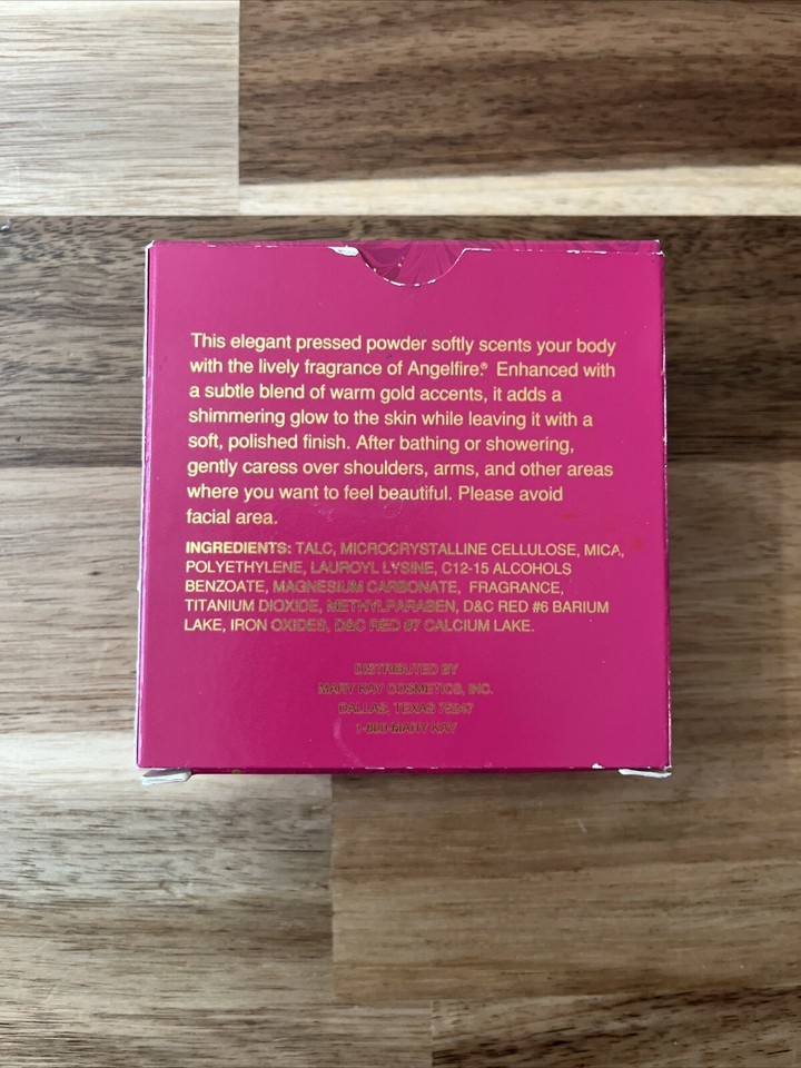 Vintage Mary Kay Angelfire Pressed Body Powder 1 Oz New Old Stock W/ Box. Box has light shelf wear.