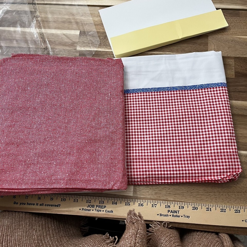 Brand new in package Target Restore Restyle Farm Friends Collection Twin Sheet Set Cotton Rich 70% Cotton 30% Polyester. This sheet set has a sheep pattern all over the fitted sheet, red and white check top sheet, and a red and white gingham pattern with a white and blue border at the top. Made in Spain.