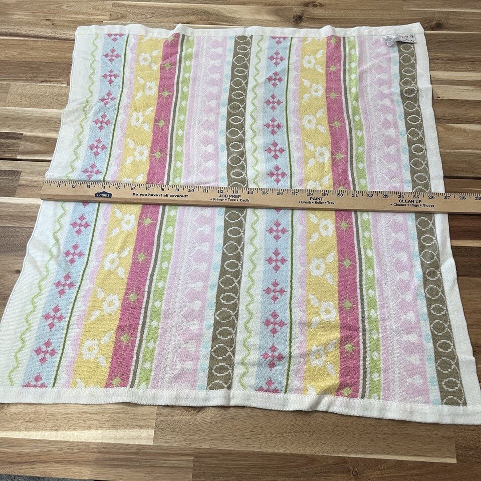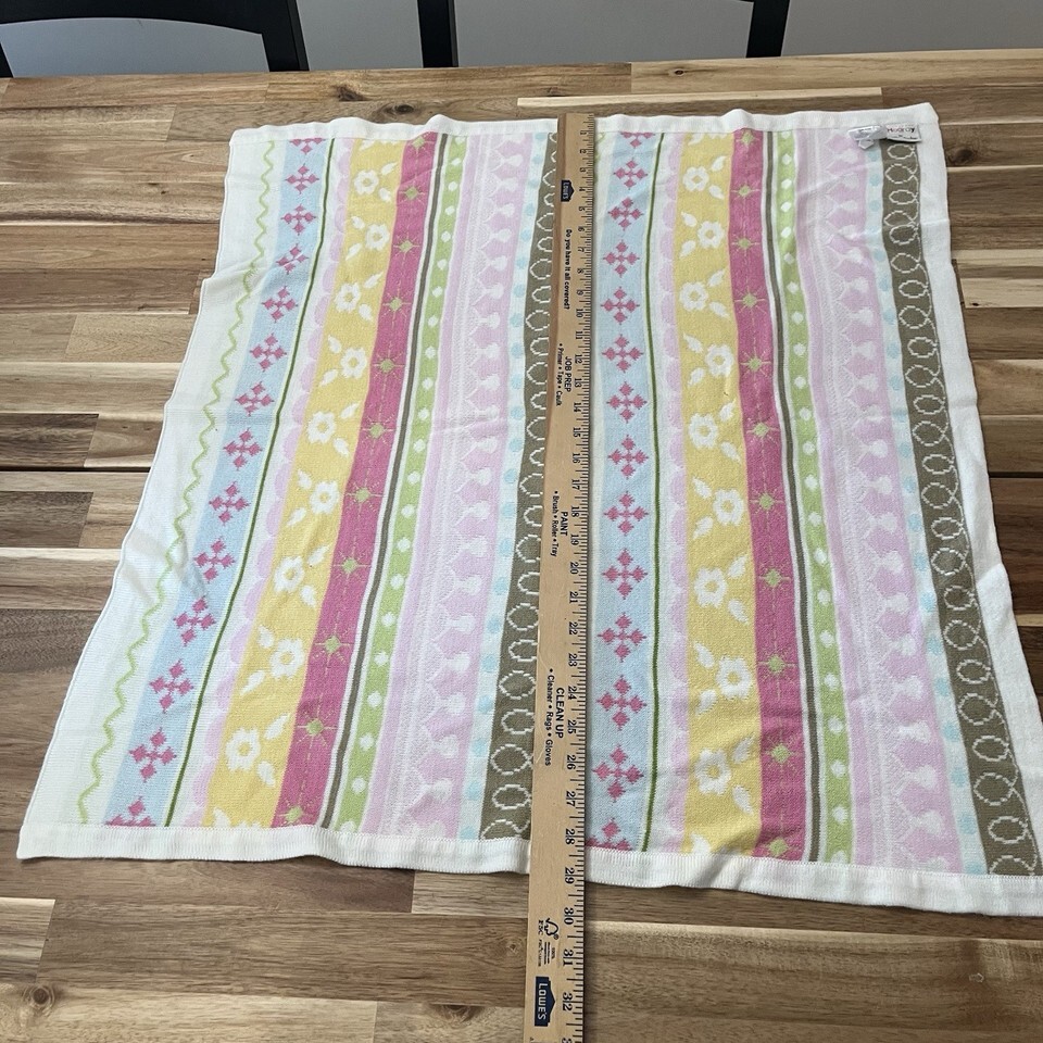 Hooray Cynthia Rowley Girls Knit Acrylic Baby Blanket Pink Green Stripes