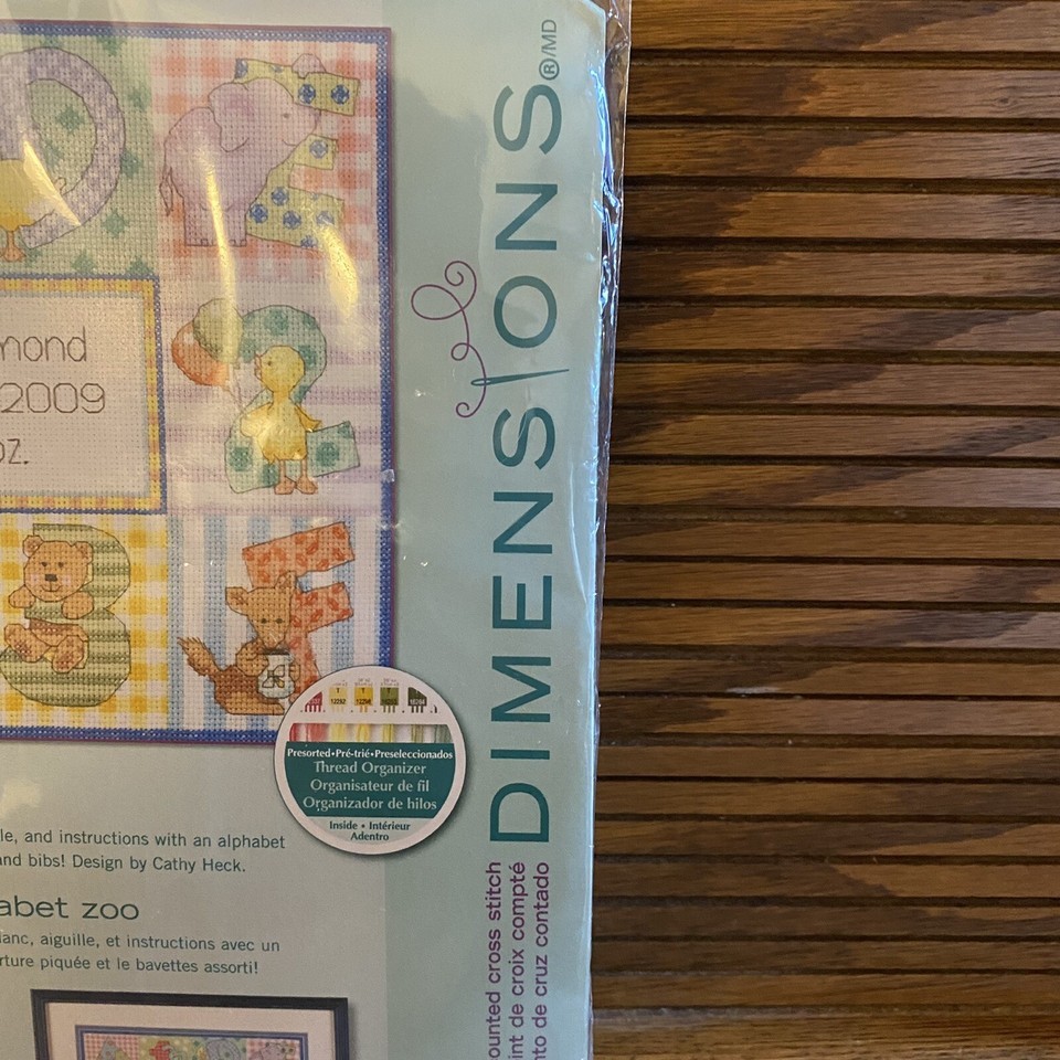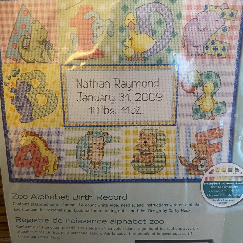 Dimensions Zoo Alphabet Birth Record Counted Cross Stitch Kit #73472 NEW. CLOTHING AND FABRIC ITEMS: All clothing and fabric items have been steam cleaned and/or washed per standards.