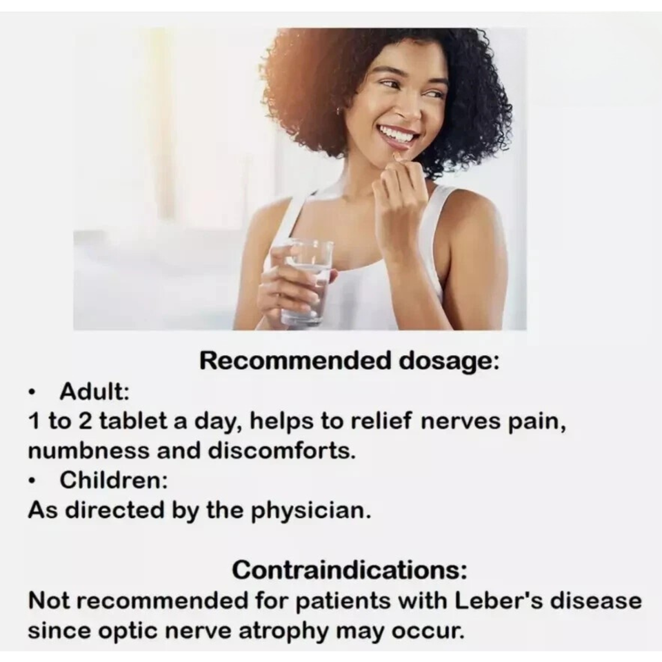 Take 1 to 2 tablets daily to alleviate nerve pain, numbness, and discomfort.