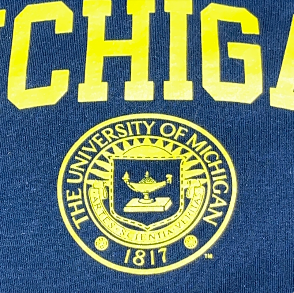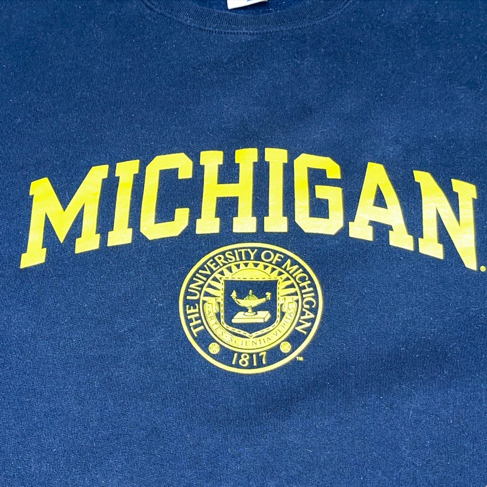 VINTAGE Michigan Wolverines Sweatshirt Mens Sz XL Champion Spellout Navy Blue