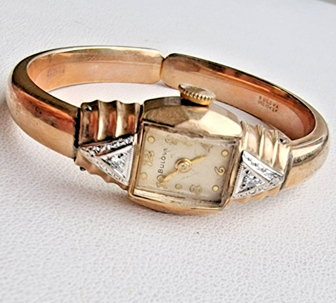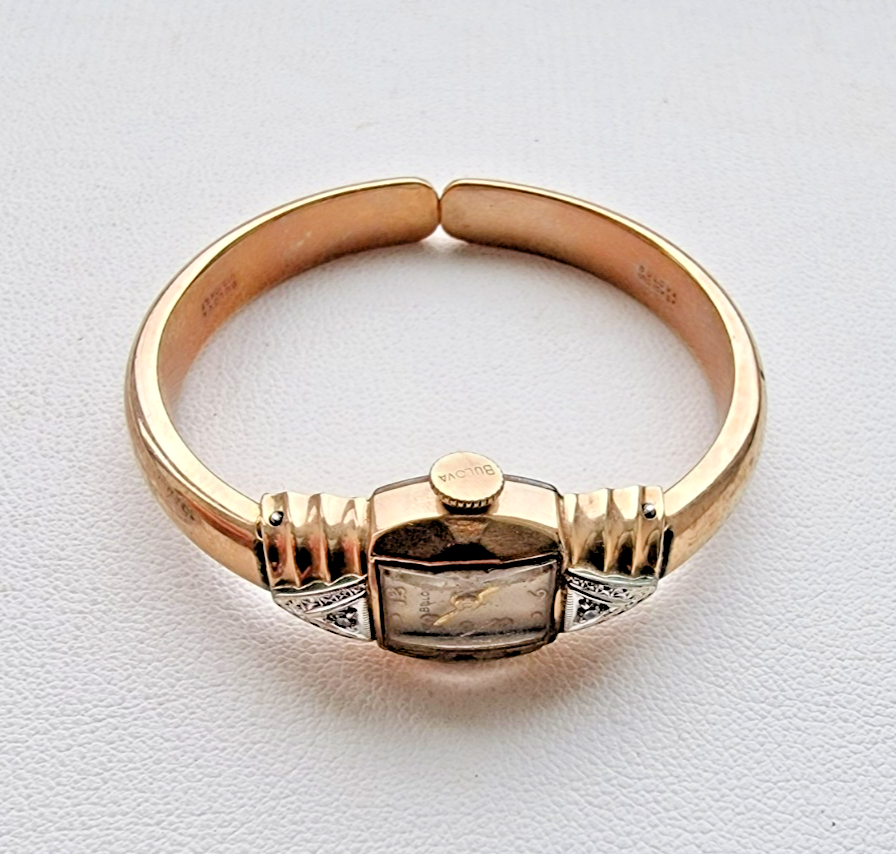 BULOVA 10K GOLD FILLED NATURAL DIAMOND MECHANICAL LADIES WRISTWATCH 17 j N/R