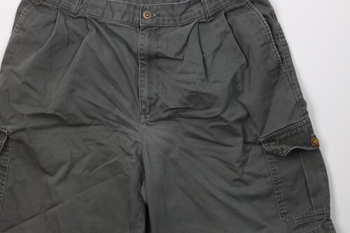 Vtg 90s Streetwear Mens 36 Faded Pleated Above Knee Cargo Shorts Green Cotton