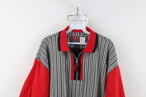 Deadstock Vtg 90s Streetwear Mens L Color Block Striped Baggy Half Zip Knit Polo