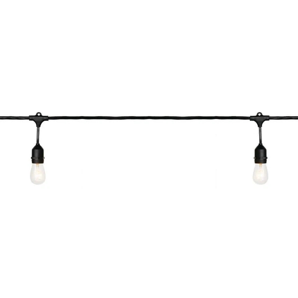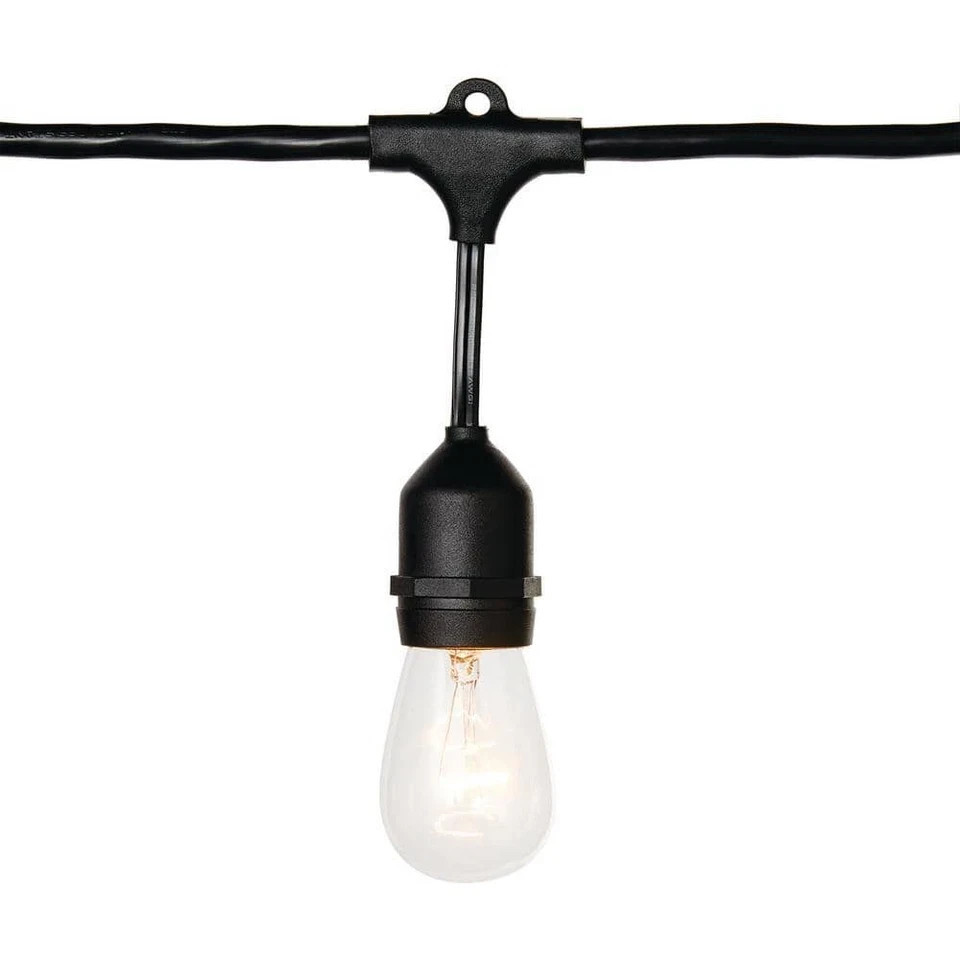 String Lights combine the beauty of vintage, Edison-style bulbs with the latest in commercial grade string lights. The soft, warm light will add a welcoming glow to any location. This light set includes 12 incandescent glass light bulbs on a 24 ft. string and its Cutting Edge technology means you can link up to 240 ft. for a total of 10 strings using 1 electrical outlet. These commercial-grade lights are equipped with weather-resistant bulbs and have been designed for outdoor use, but will also add a festive atmosphere to your indoor locations. Each set is equipped with 6 spare incandescent bulbs for your convenience.