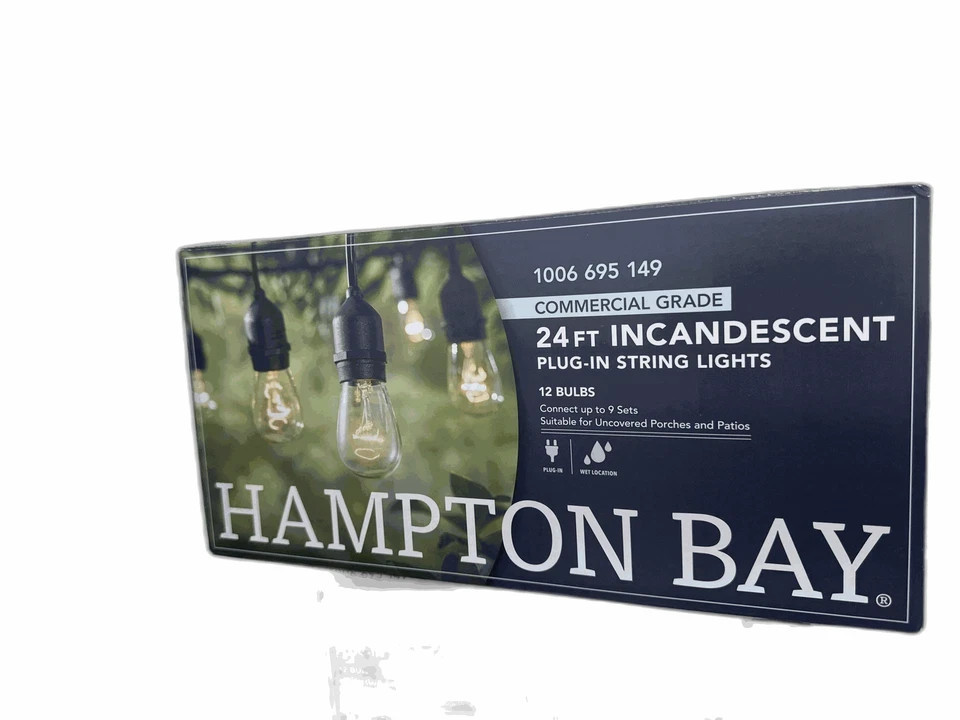 Hampton Bay 24 ft 12-Light Indoor Outdoor Edison Bulb String Lights Plug In