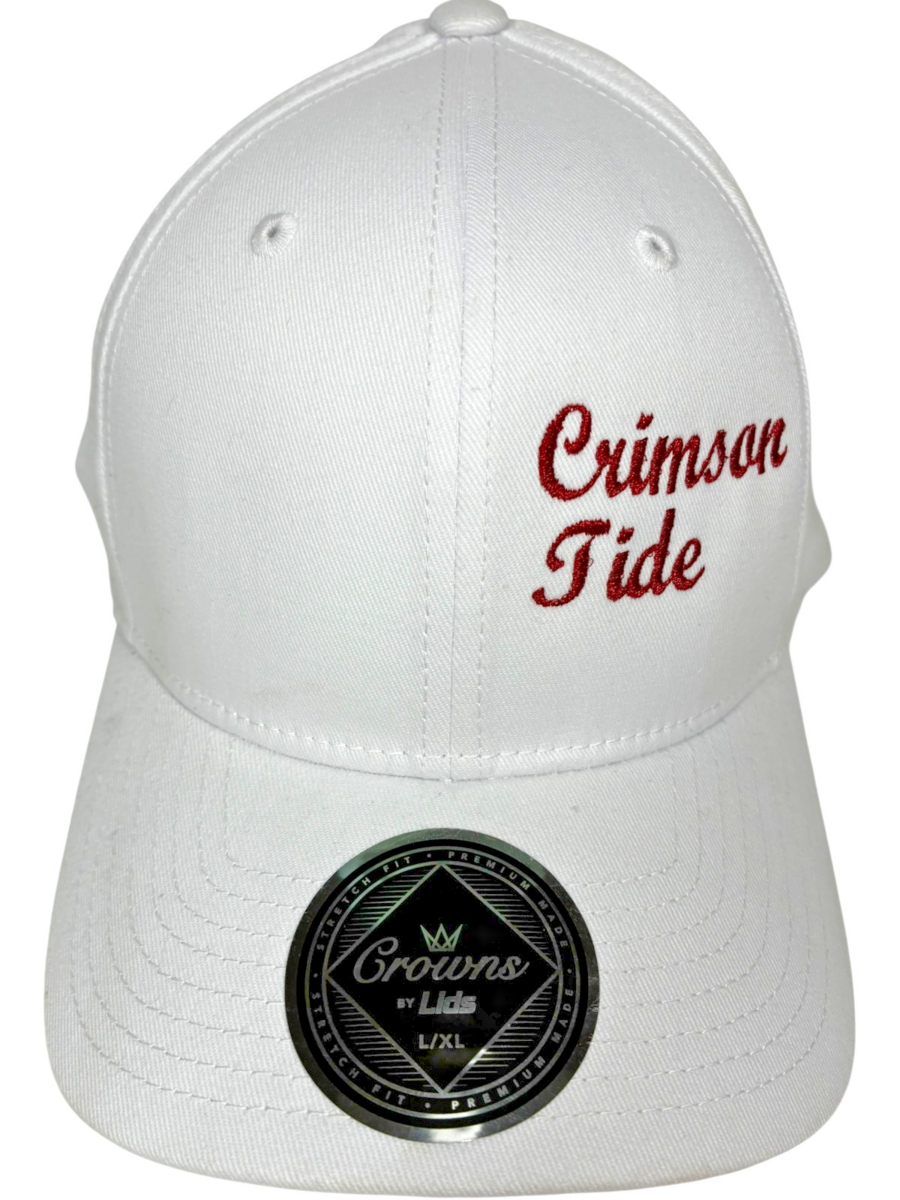 crimson tide script 7 white L/XL fitted university of alabama hat crowns by lids
