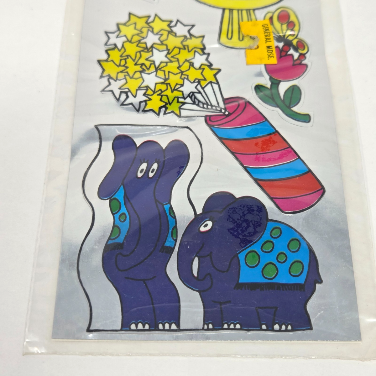 VINTAGE 1983 GORDY SILVER GLOW REFLECTION STICKERS NEW SEALED MIRROR ELEPHANT