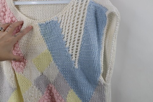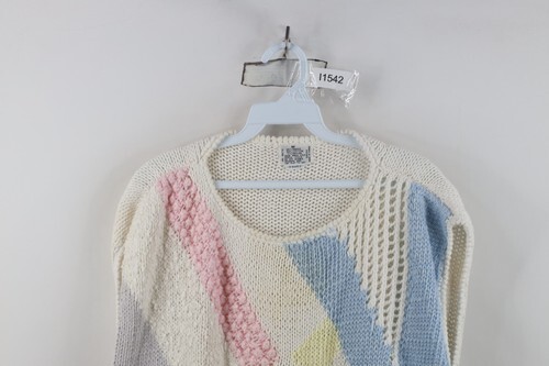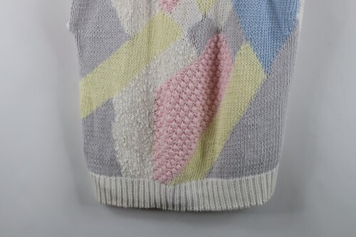 Vintage 80s Mid Mod Womens Medium Geometric Pastel Textured Knit Sweater Vest