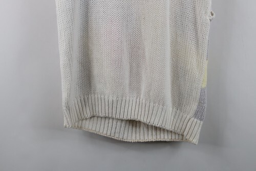 Blemishes front. Holes/loose knit front. Collar yellowed. Pilling