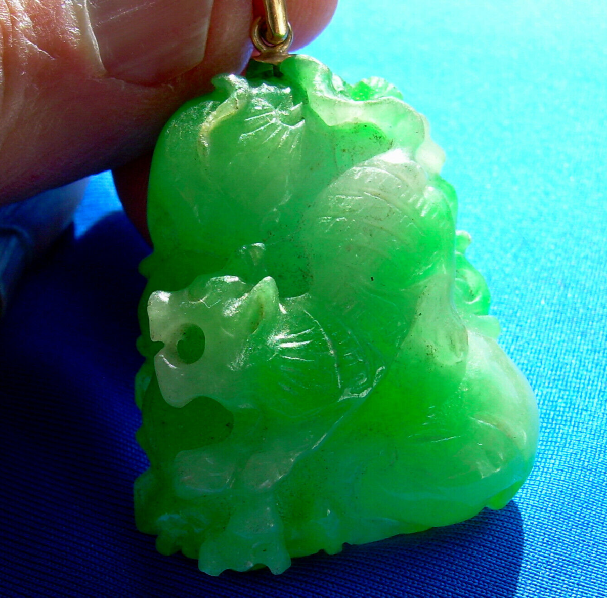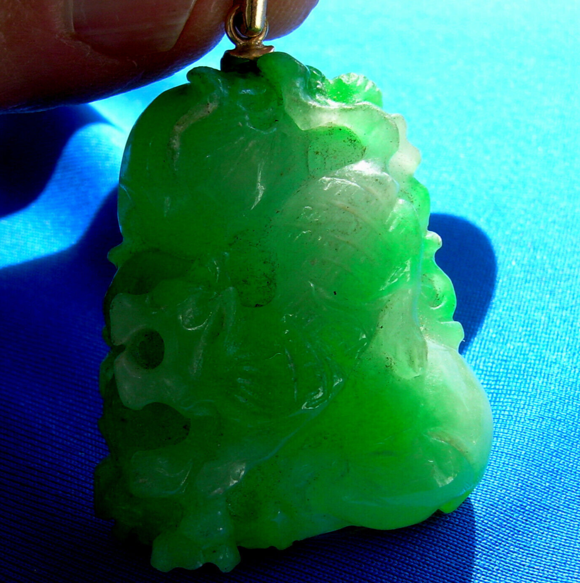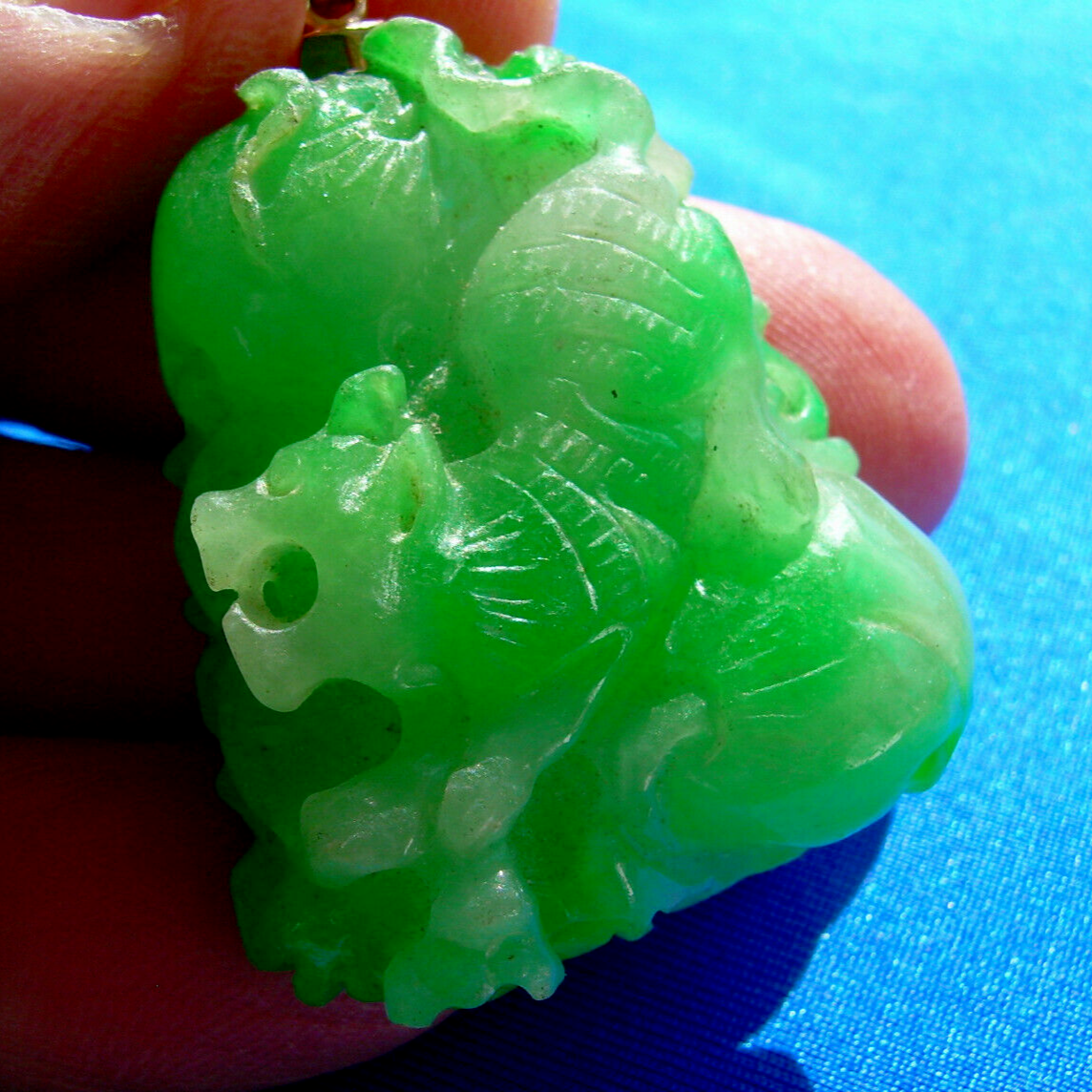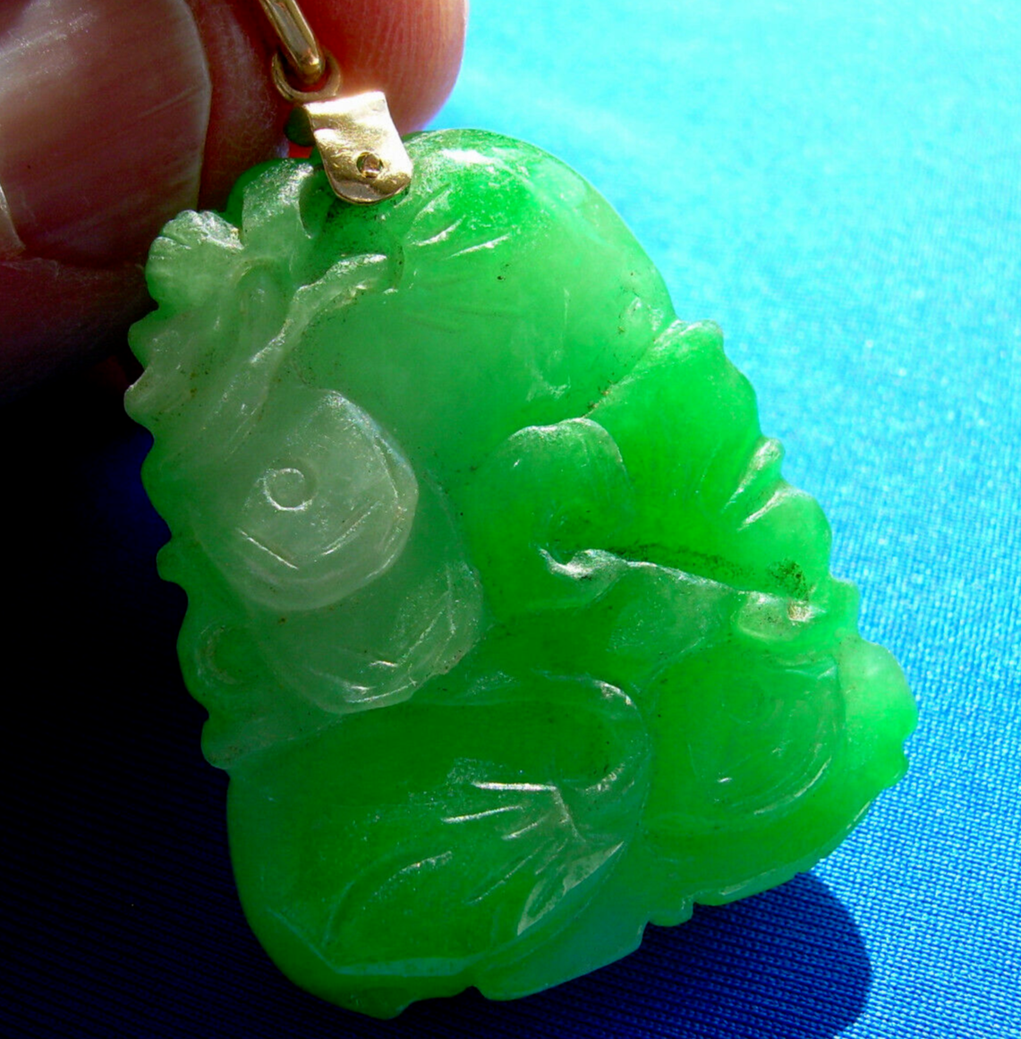 Green vine jade fine velvet color semi translucent Victorian pendant.