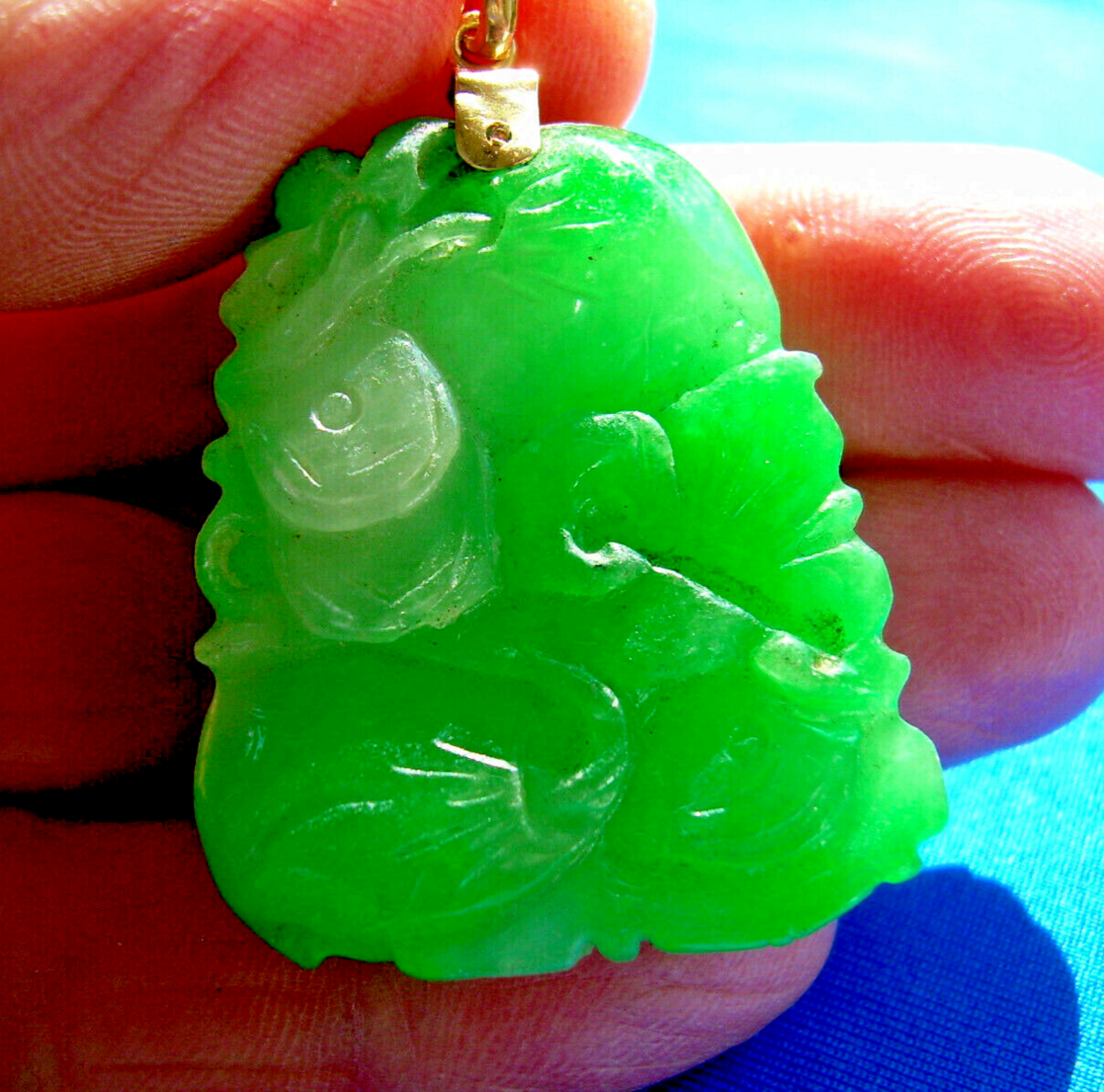 Earth mined Green Jadeite Jade semi translucent Pendant Lucky 18k Gold Medallion