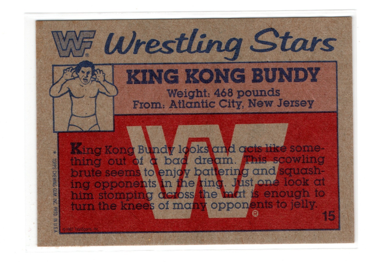 1987 Topps WWF Wrestling Stars King Kong Bundy #15 WWE Legend Trading Card - NM!