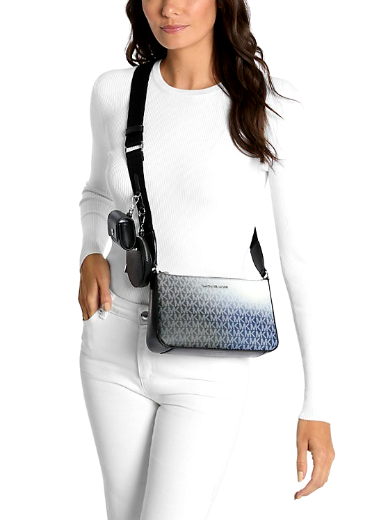 New Michael Kors Jet Set Small Ombré Signature Crossbody Bag with Case Black