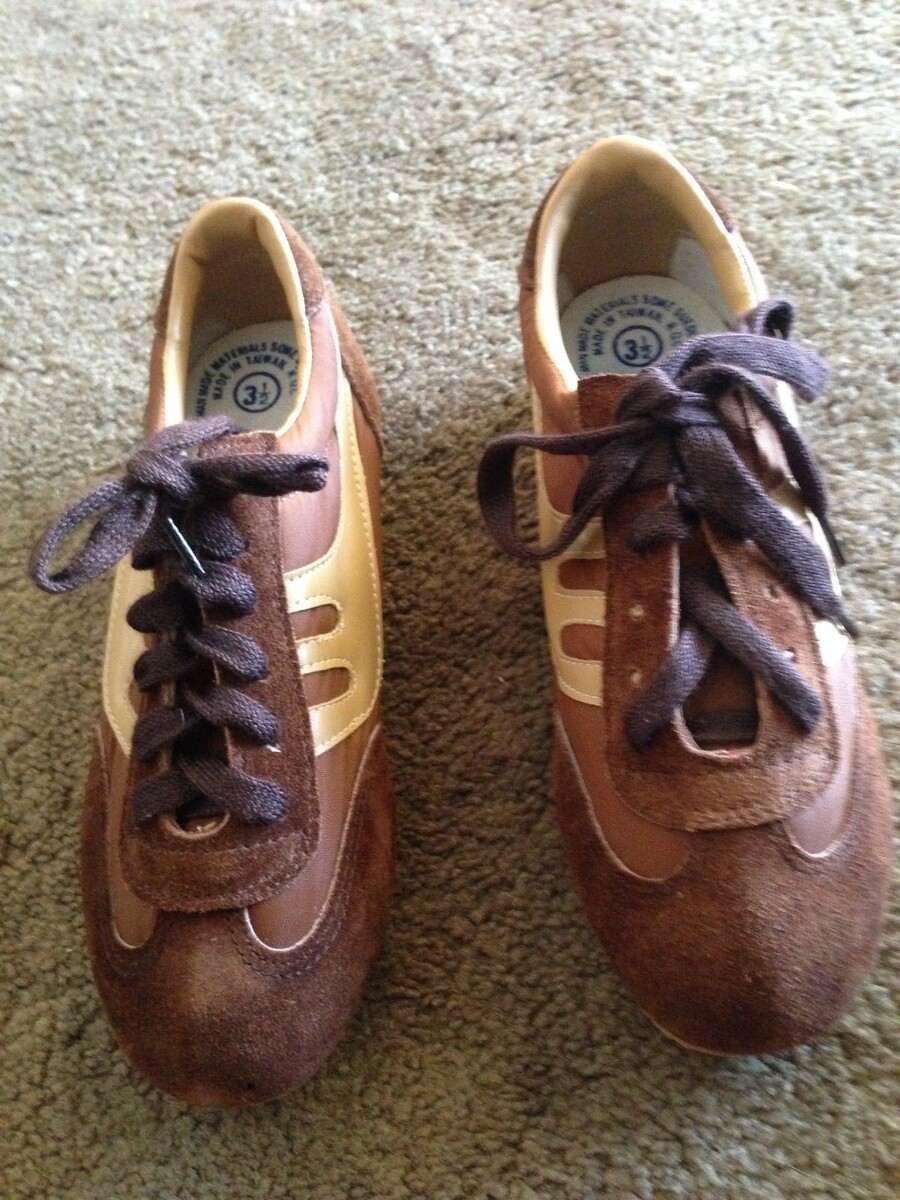 Rare Vintage 1980'S Fabrique En Taiwan Course Chaussures 3,5 Original Daim
