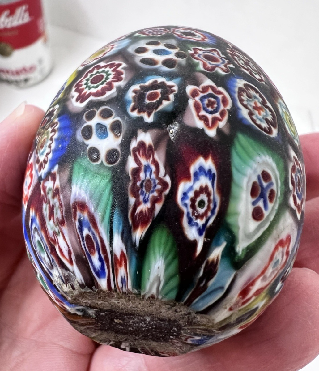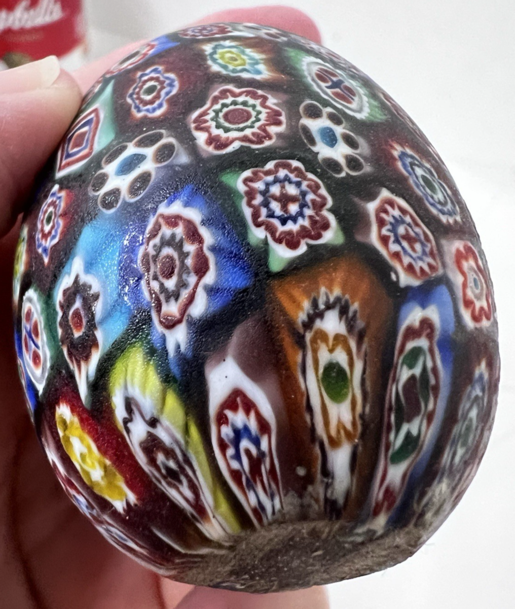 Beautiful Millefiori Egg Satin Glass Paperweight Artwork 2 1/2 Inch