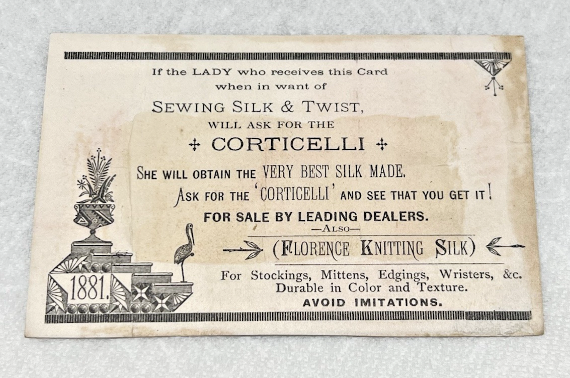 1880's Florence Knitting Silk Trade Card and 26 similar items