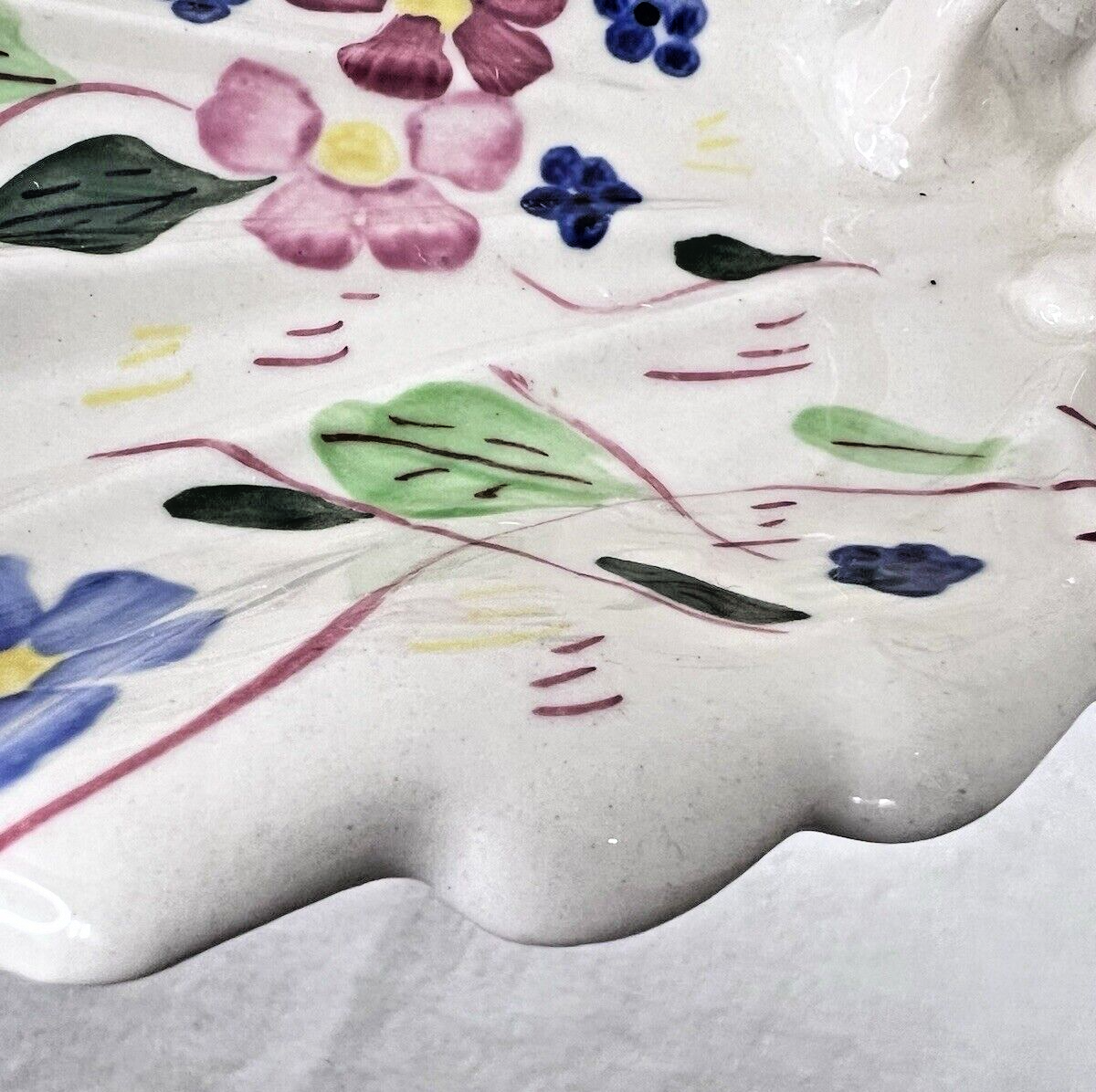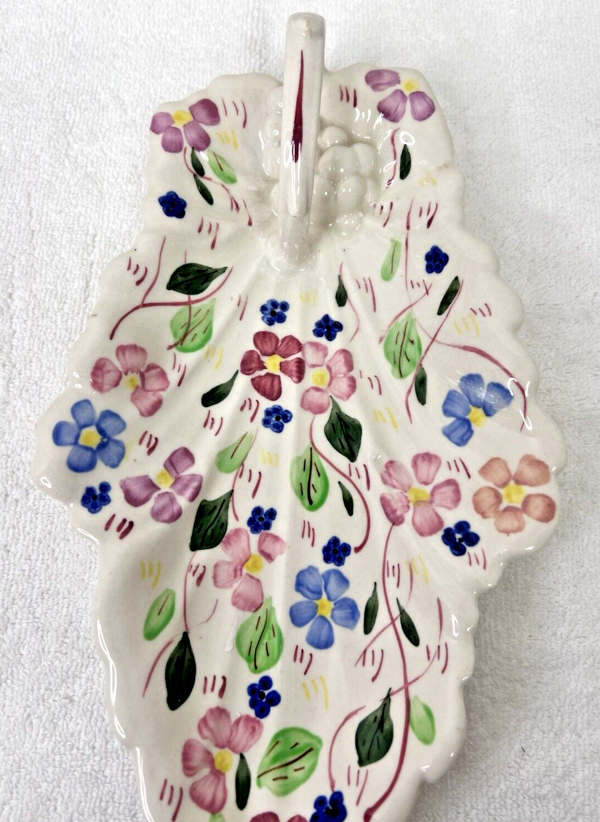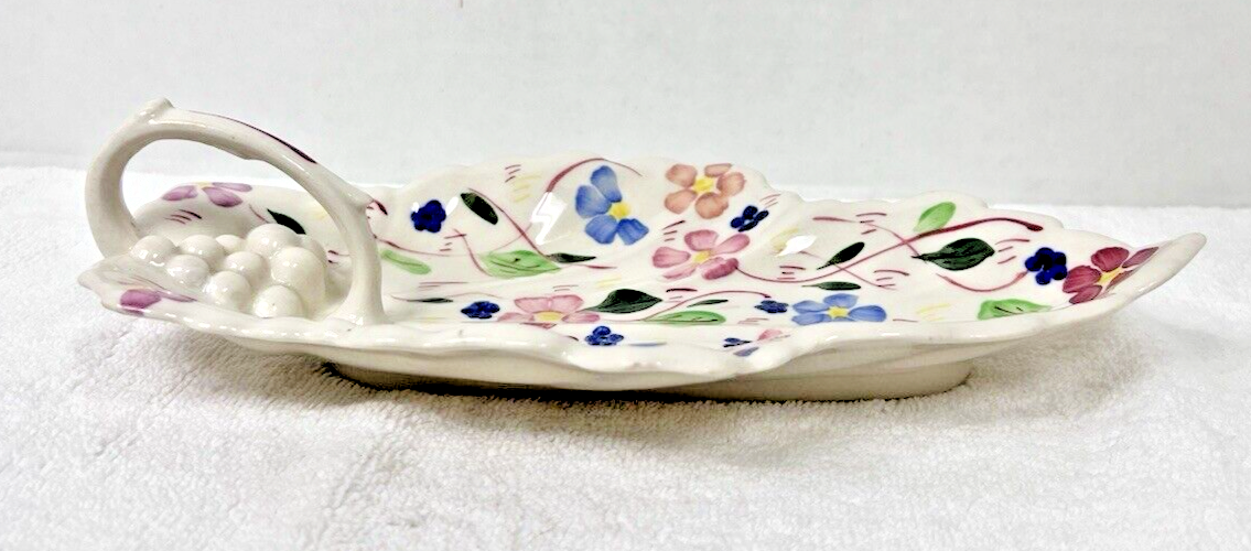 Blue Ridge Pottery Hand Painted Floral Leaf Tray 11โ w Grape Cluster Handle Flak