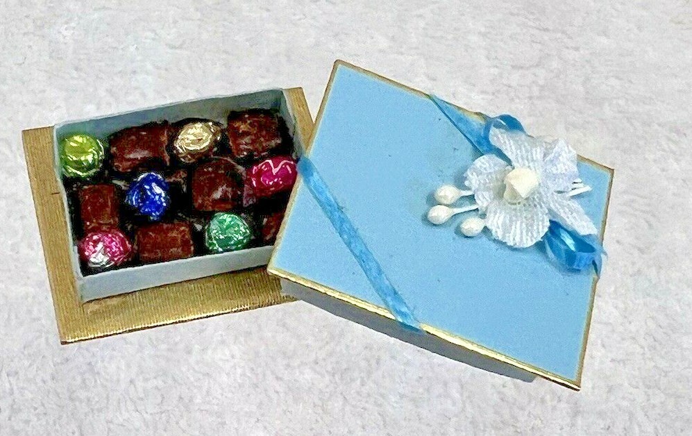 Amazing Blue Miniature Lovely Handmade Boxes of Chocolates All of 1" Dollhouse