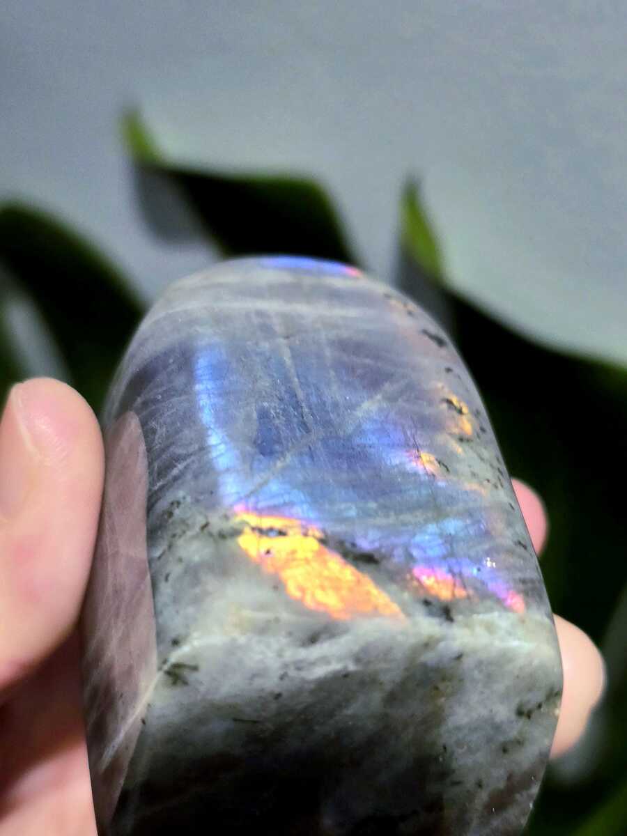 It's important to know that to see Labradorite's amazing flash properly, you'll need good lighting. Without enough light, the colors might not look as bright as they do in pictures taken with a ring light. So, make sure Labradorite is in a well-lit area to fully appreciate its mesmerizing flash.