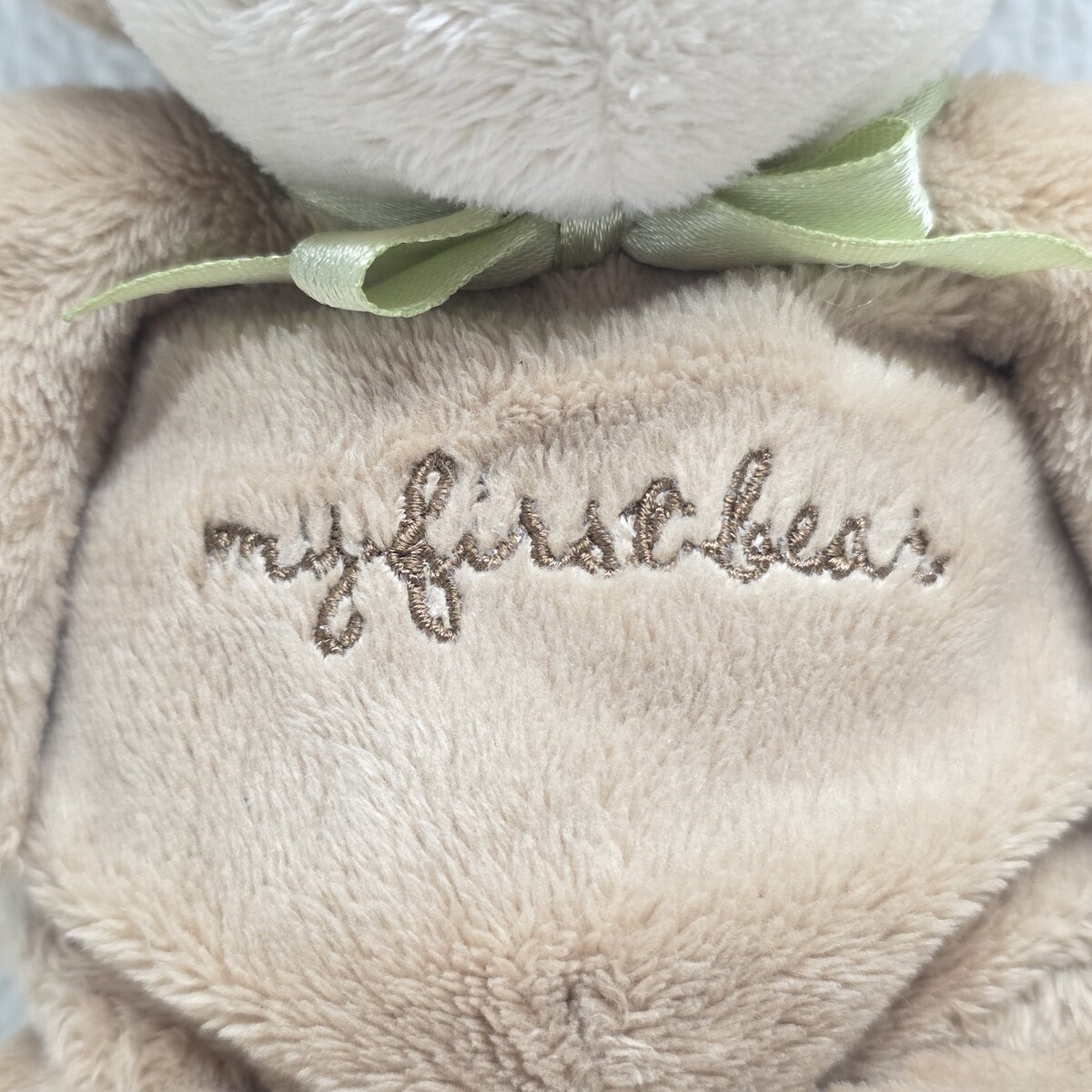 Child of Mine Carters Brown My First Bear Green Bow 8" Plush - New! #81256. Images show actual item that will ship.