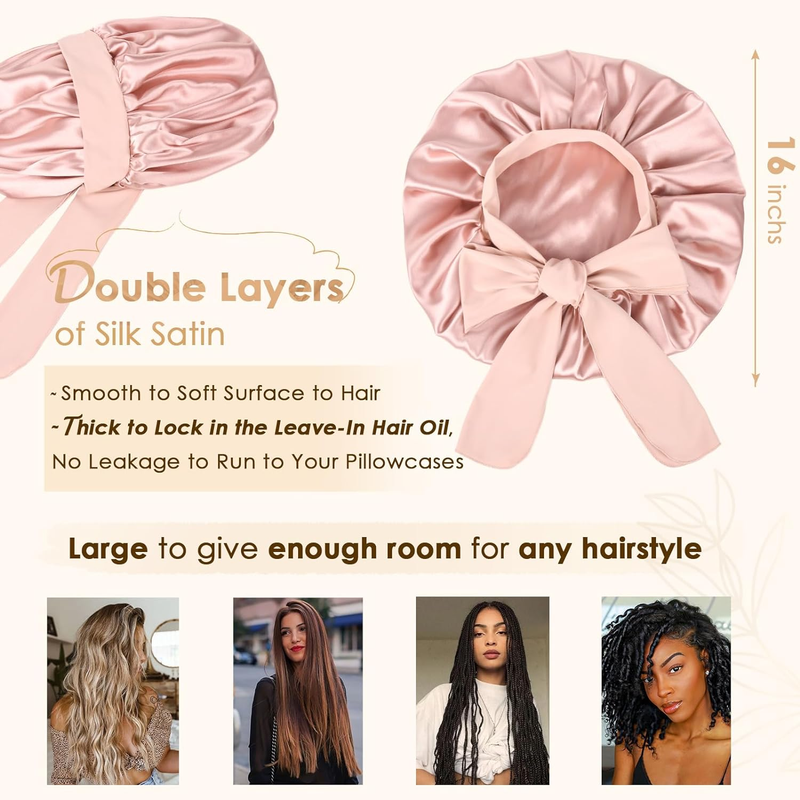 Silk Bonnet for Sleeping Women Adjustable Double Layer Satin Bonnet Reduce Friction Prevent Frizz Natural Curly Hair