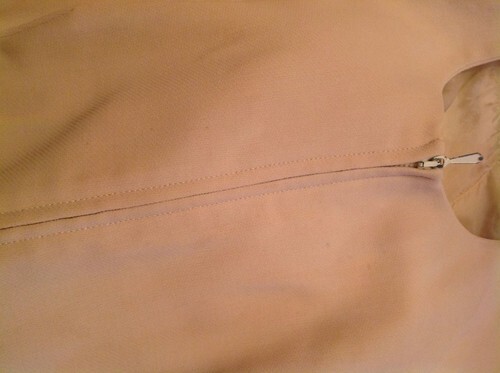 This jacket features a hidden metallic zipper, and cross stitching in the front (as seen in the photos). Its collarless neckline works great with scarves or statement necklaces.