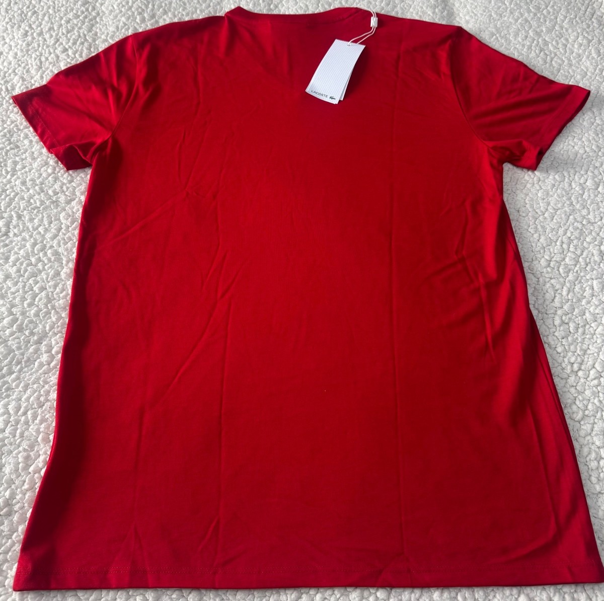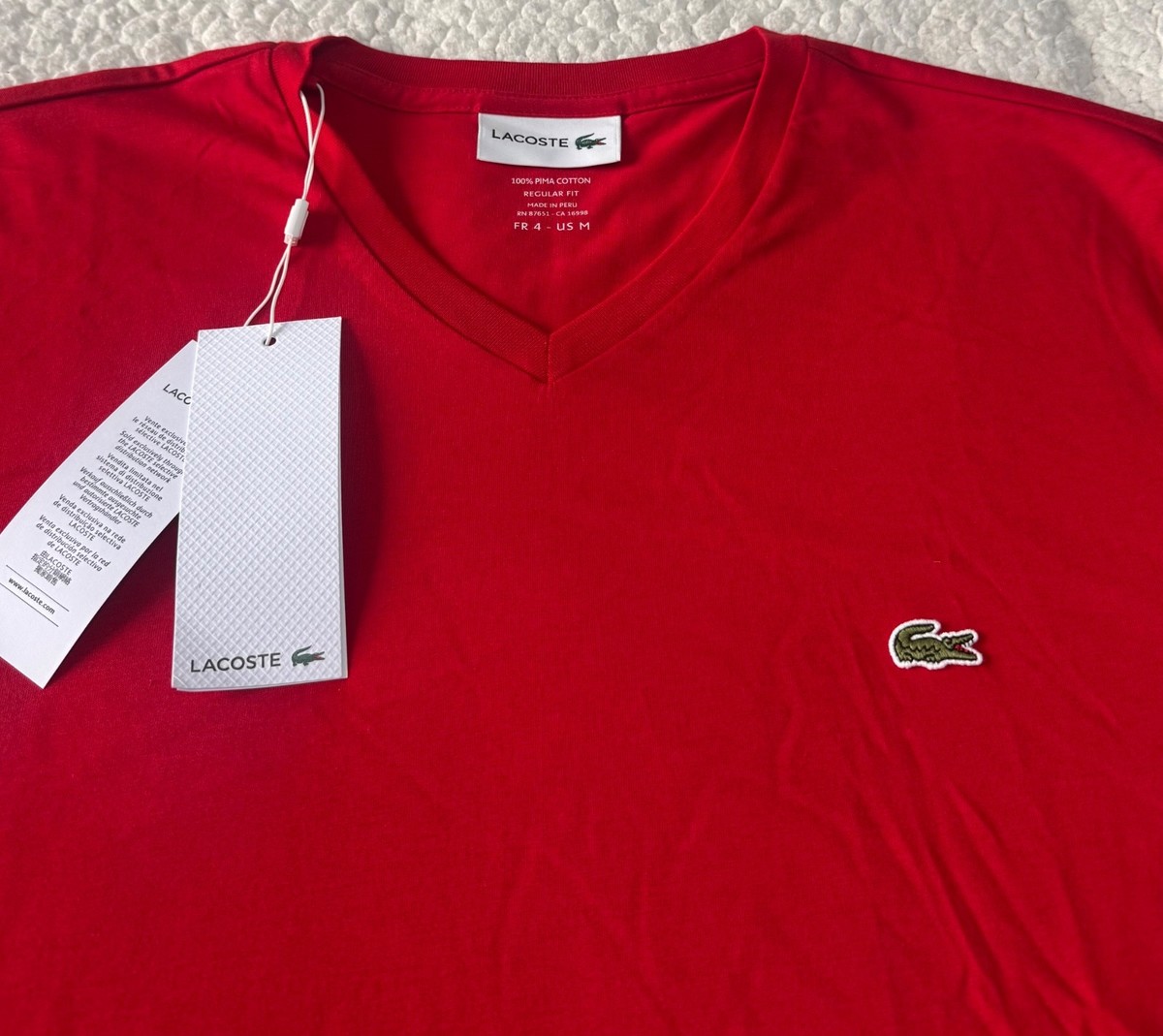 Lacoste Red Short Sleeve 100% Pima Cotton V-Neck Jersey T-Shirt Size M NWT
