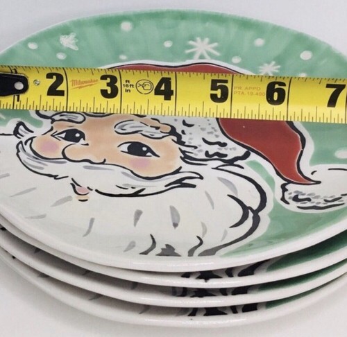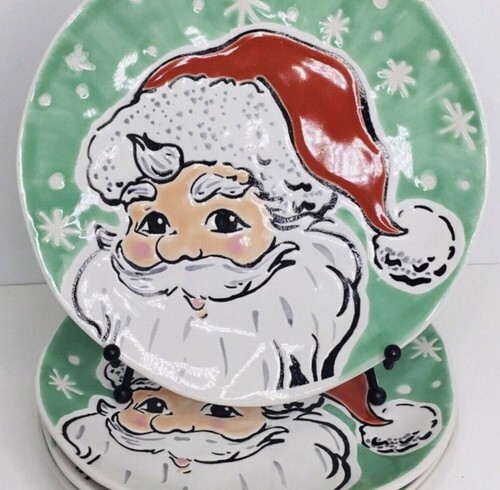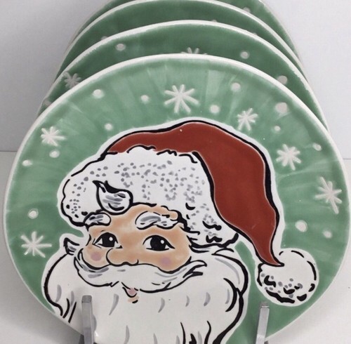 4 Ceramic Dinner Plates ELI + ANA Sammy Santa Green Christmas Holiday 10.5" NEW