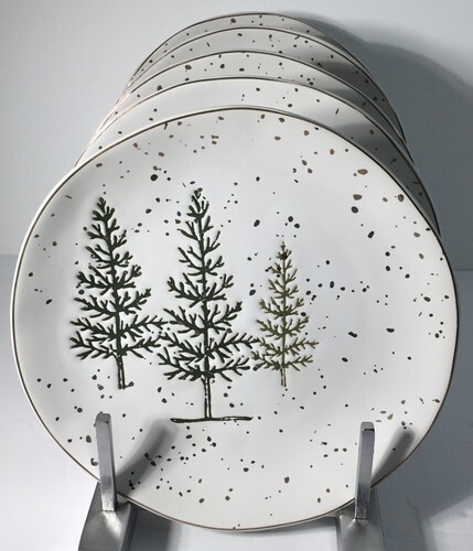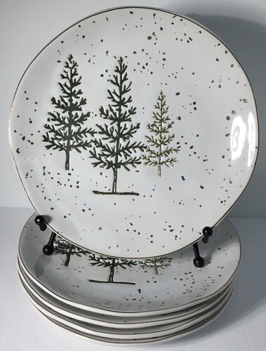 4 Salad Plates POTTERS STUDIO CHRISTMAS Pine Tree HOLIDAY 8? New