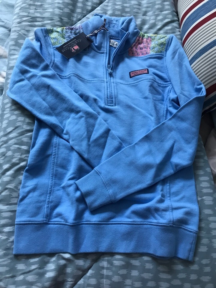 NEW Vineyard Vines Patchwork Shoulder Shep Shirt 1/4 Zip Pullover Woman Sz XXs. Condition is New with tags. Shipped with USPS Priority Mail. Items in this listing come from a smoke-free, pet-free household. Colors can vary based on individual computer screens.
