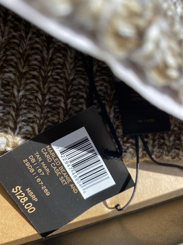 Frye Genuine Leather CARD WALLET BEANIE Brown White Hat NEW IN BOX TAG $128.