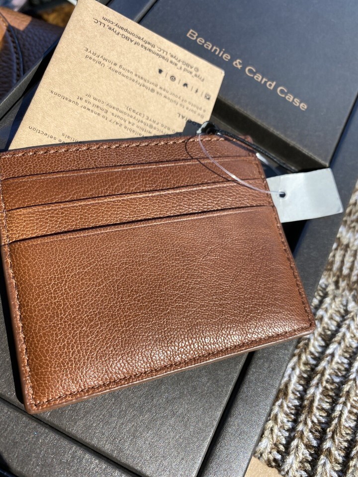 Frye Genuine Leather CARD WALLET & BEANIE Brown Hat NEW IN BOX