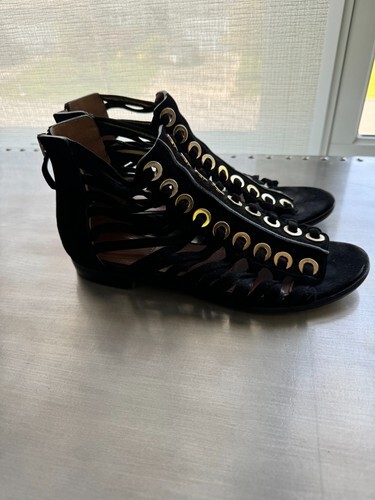Givenchy Paris Black Suede Caged Gladiator Flat Sandals SZ 6.5 Italy