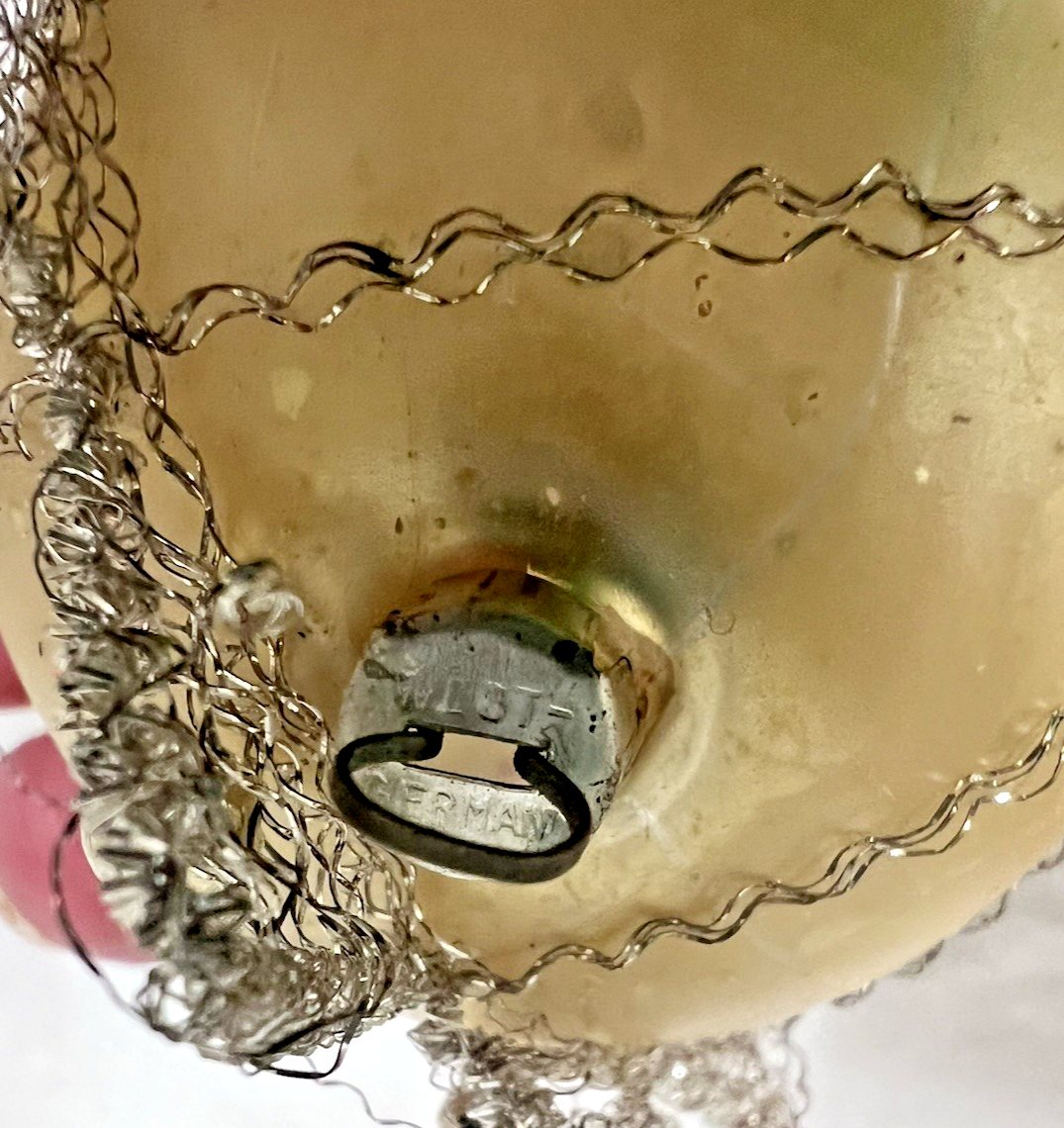 Vintage CRM Glass w Crinkle Wire Star & Beads Ball Christmas Ornament W Germany