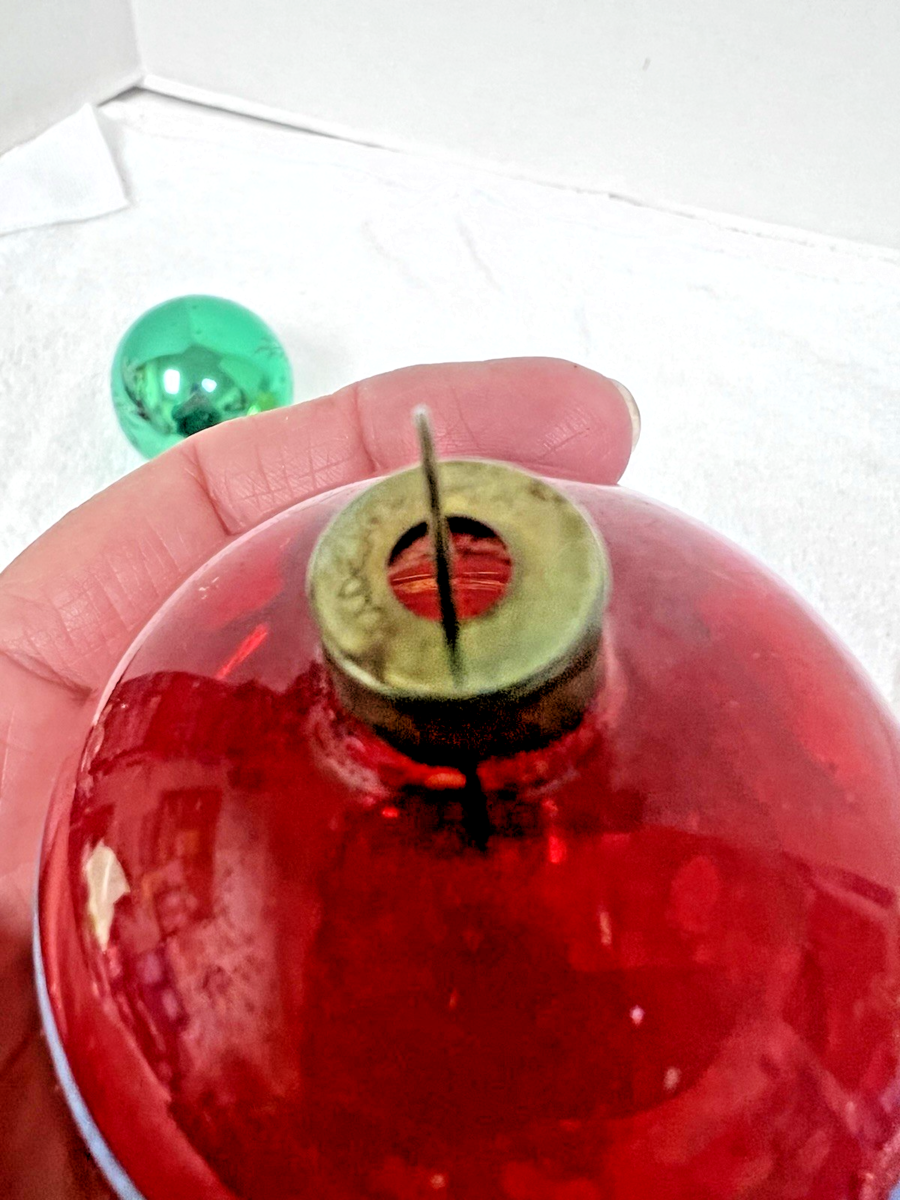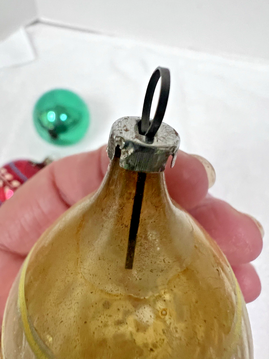 3 Vintage Glass Hand Painted Red Green Yellow Ball Christmas Ornament