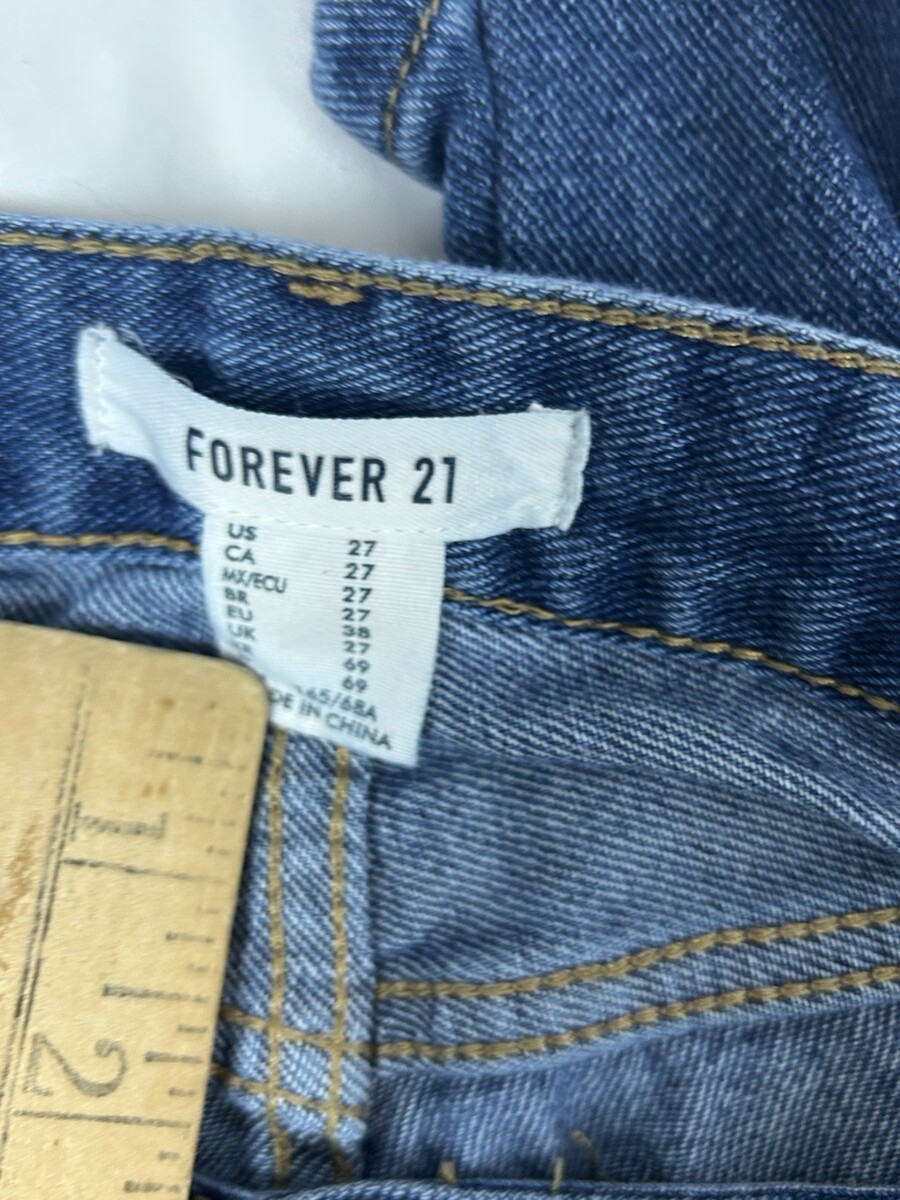 Forever 21 Women’s Distressed Ripped Blue Jeans Size 27 High Rise Straight